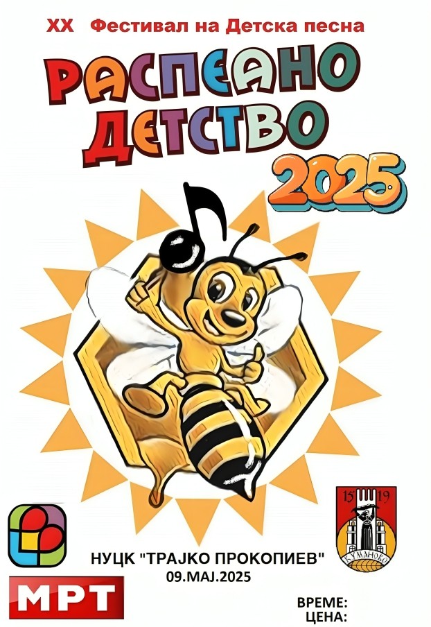 На 9. мај 2025 година (петок), со почеток во 18.00 часот, ќе се одржи фестивалот на детска песна „Распеано детство“, а децата ќе може да уживаат во 18 нови детски песнички, создадени од 15 автори.