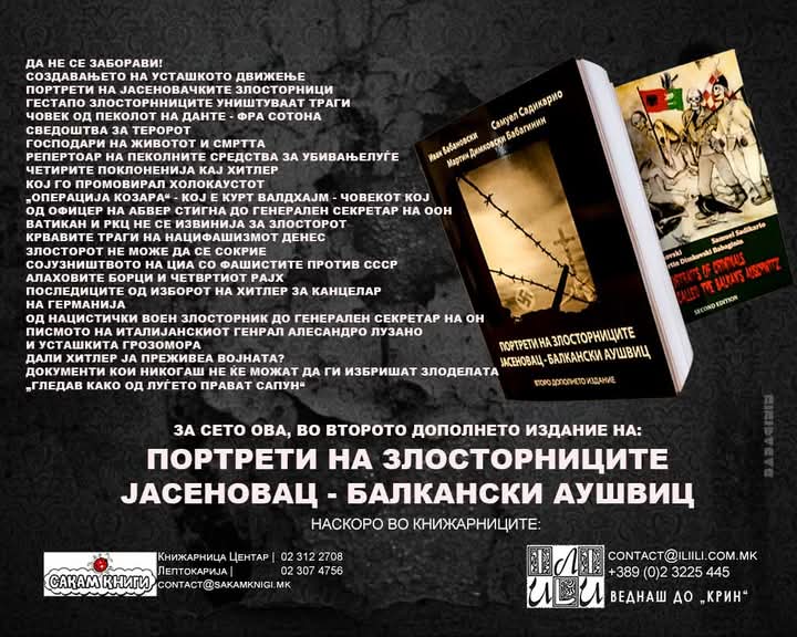 Деновиве (29 мај, 2025 година) во Кинотека на Македонија беше промовирано второто дополнето издание на книгата „Портрети на злосторниците Јасеновац- Балкански Аушвиц”, од авторите проф. Иван Бабановски, проф. д-р Самуел Колономос Садикарио и Мартин Димковски Бабагинин.