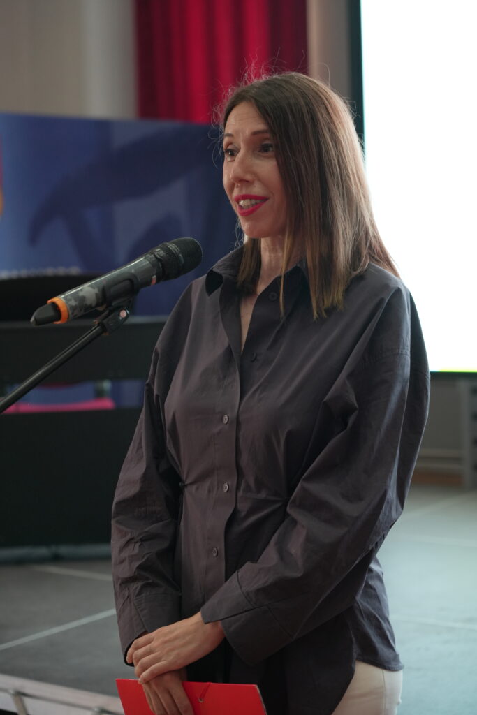 Претседателката на Здружението на просветни работници на Куманово Анита Димовска, одржа поздравен говор и додели благодарници, а се обрати и Сандрина Арсовска Јовановски.