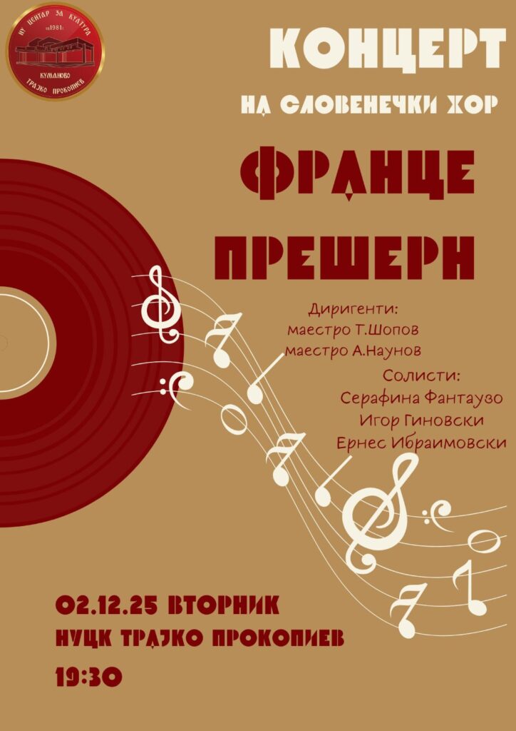 Хорот „Франце Прешерн“ постои повеќе од 29 години и делува во состав на Словенечкото здружение „Франце Прешерен“ во Скопје. Тој ја негува словенечката и македонската народна песна, уметнички песни од композитори на двата народа, како и композиции од ризницата на светската хорска и оперска литература.
